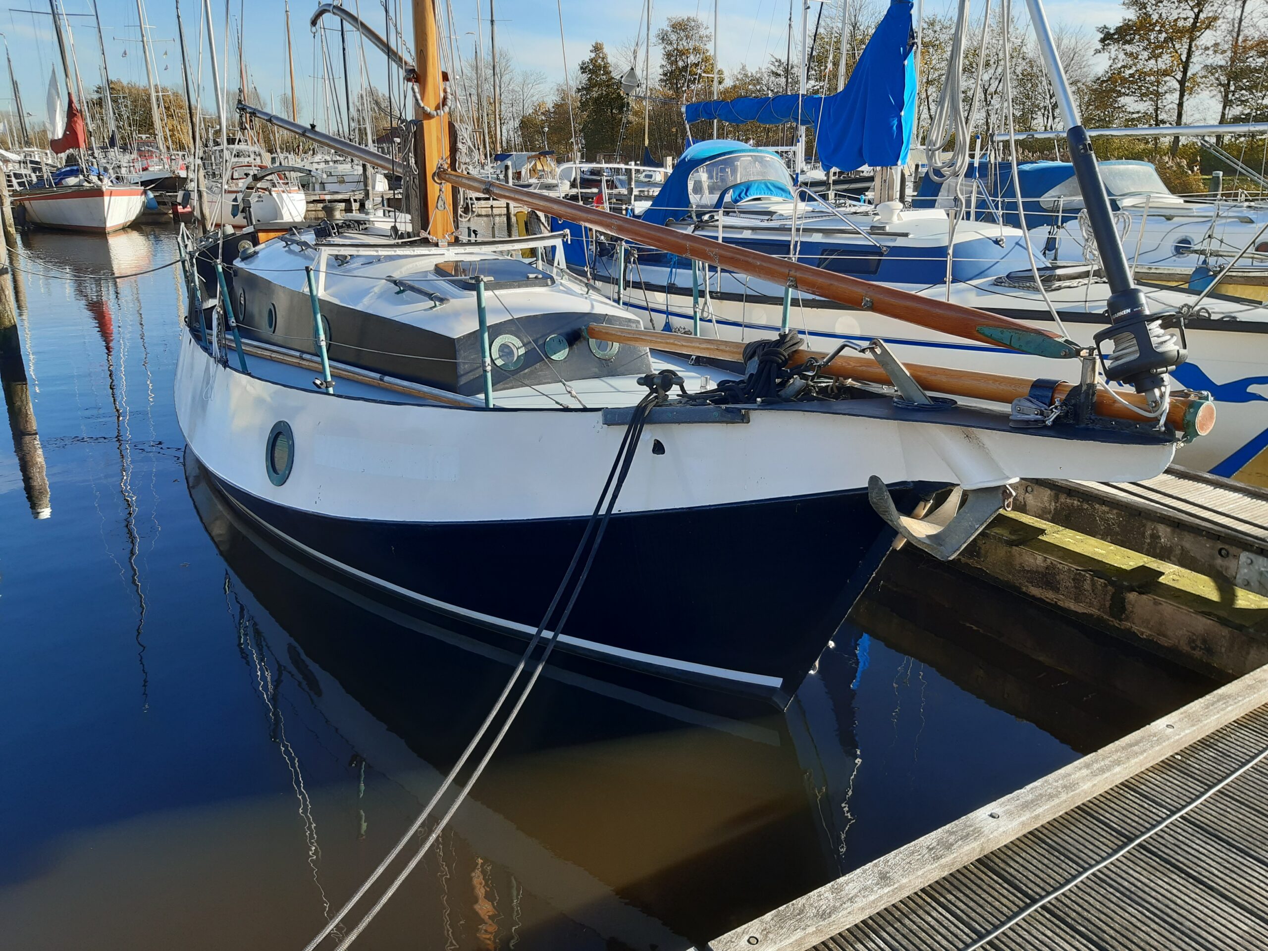 Dit zeiljacht ligt in Dokkumer Nieuwe Zijlen aan de steiger en is daar op afspraak te bezichtigen.