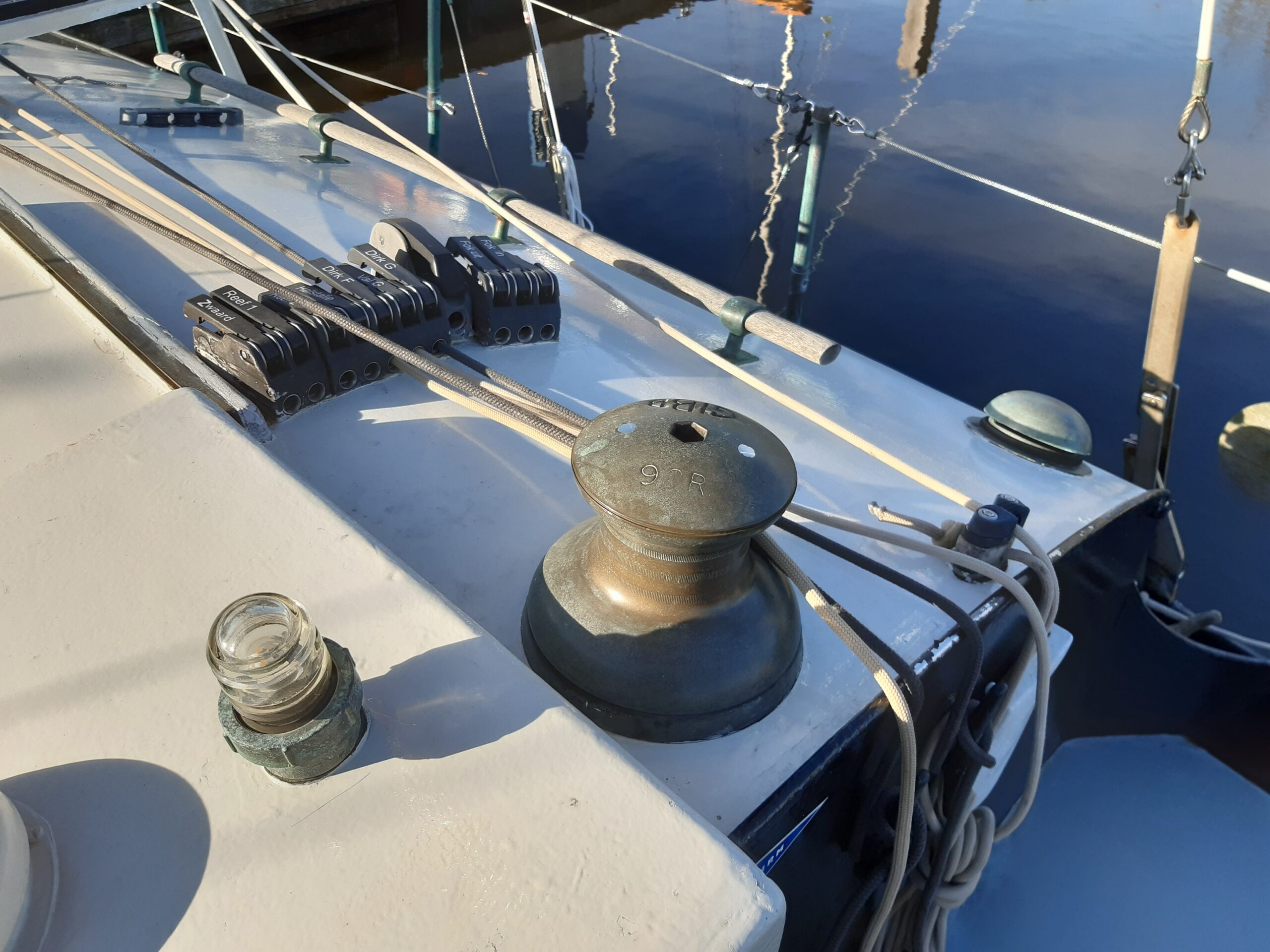 En dan de zeilen, dit is tenslotte een zeiljacht, en wat voor een. De zeilgarderobe bestaat uit 2 Grootzeilen (met huik), 2 fokken, waarvan eentje op een rol/reefsysteem van Harken staat, 2 Gennakers (een bol en een Code Zero) met spinnakerboom. De zeilen zijn van 2024 en in topstaat! Alle lijnen en vallen in Dyneema (zeer goede staat). Er staat 1 grote Gibbs 2 toeren lier aan dek. Alle lijnen lopen naar de kuip, dit schip is dan ook meer dan goed solo te zeilen. De fok is een keerfok, dat zeilt wel zo easy. De mast en rondhouten zijn van hout, allen in meer dan goede staat, mast is slechts 1 jaar gebruikt. Verstaging en spanner zijn eveneens recent.