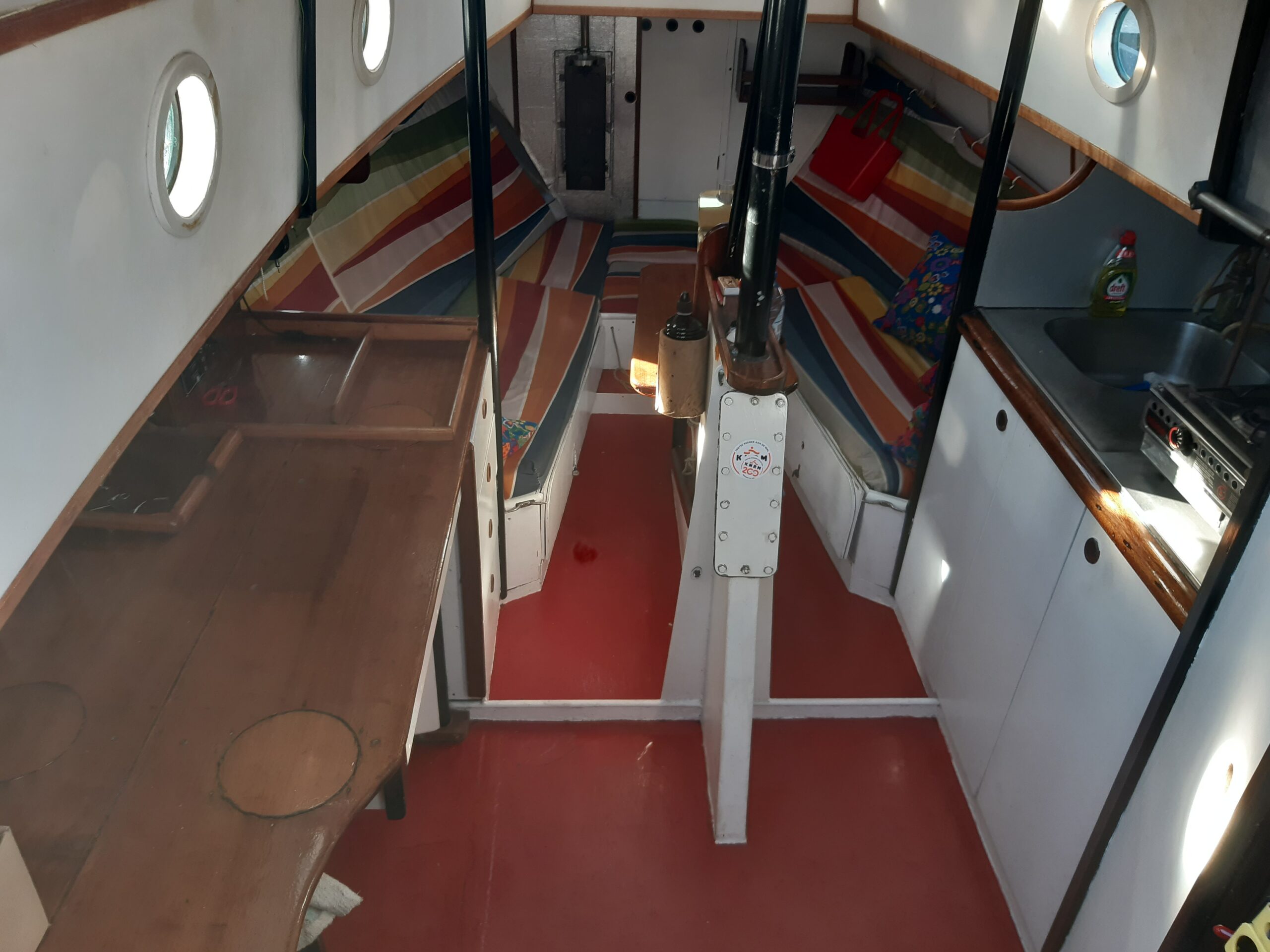 Een Cormorant 920 AK, daar hebben we het over. Een stalen zeiljacht met veel binnenruimte en nog belangrijker: diepgang van 0,50 cm. tot en met 1,20 met het midzwaard volledig naar beneden. Het is een zeiljacht dat zeilt als een scherp jacht maar dat ook gewoon vlak kan droogvallen op de Waddenzee. Onder goed bewind haal je er wel 8 knopen mee! Verder lekker eigenwijs qua looks en uitvoering, echt een zeiljacht dat in al haar bescheidenheid toch opvalt. Daarbij is ze meer dan liefdevol onderhouden, alles aan boord is even netjes en belangrijk: werkt naar behoren, geen defecten.