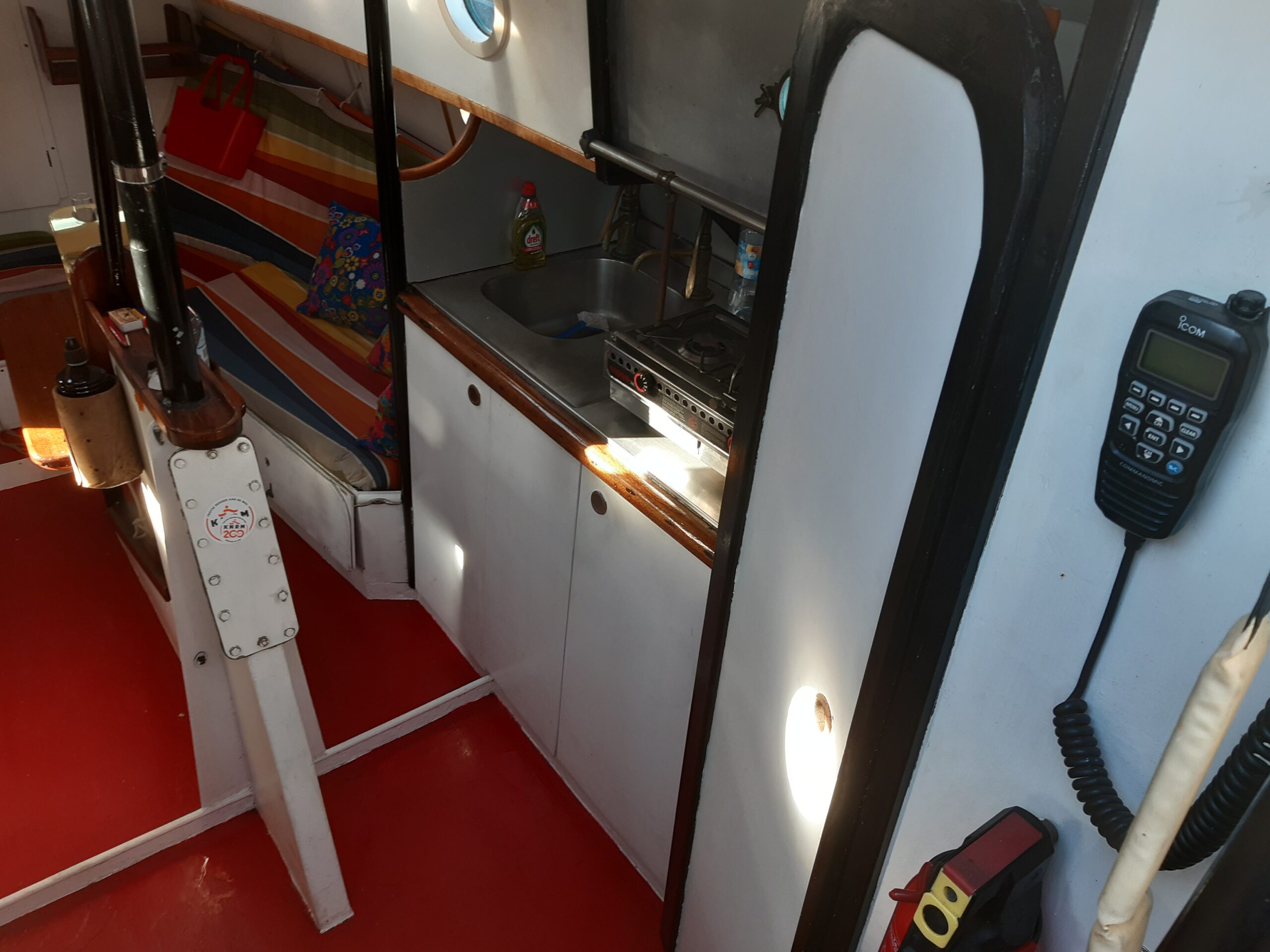 Nog wat te melden? Ja, kom vooral kijken en laat je verrassen door de ruime kajuit en het gezellige interieur. Dit is overigens een zeiljacht met achterkajuit, dus in totaal 4 slaapplaatsen, je kunt zelfs via de toiletruimte in de achterkajuit komen, dus bij slecht weer even binnendoor naar het toilet, das toch best wel luxe hoor. Deze Cormorant 920 AK gaat je zeker bevallen voor wanneer je echt iets anders goeds zoekt. Tot snel aan boord.