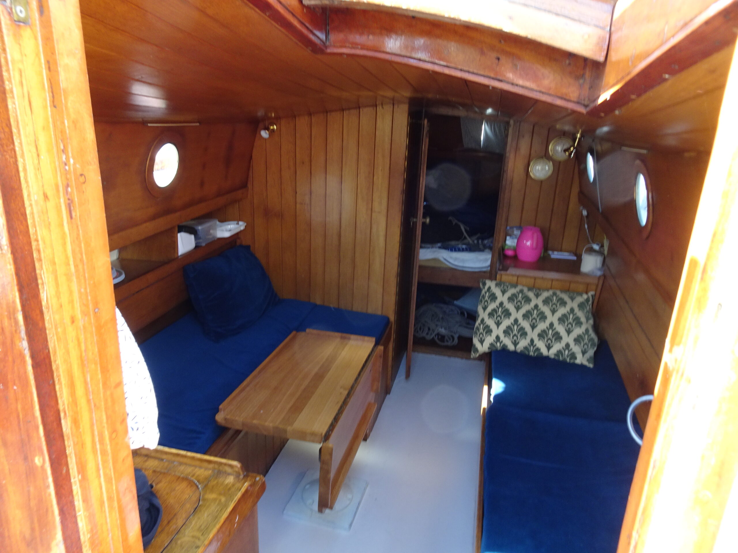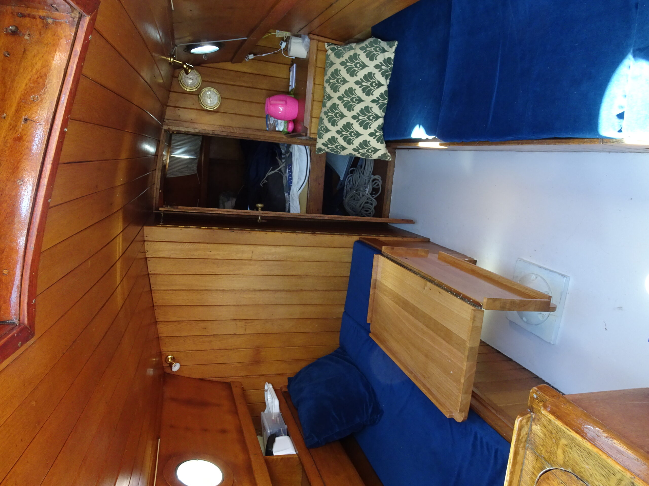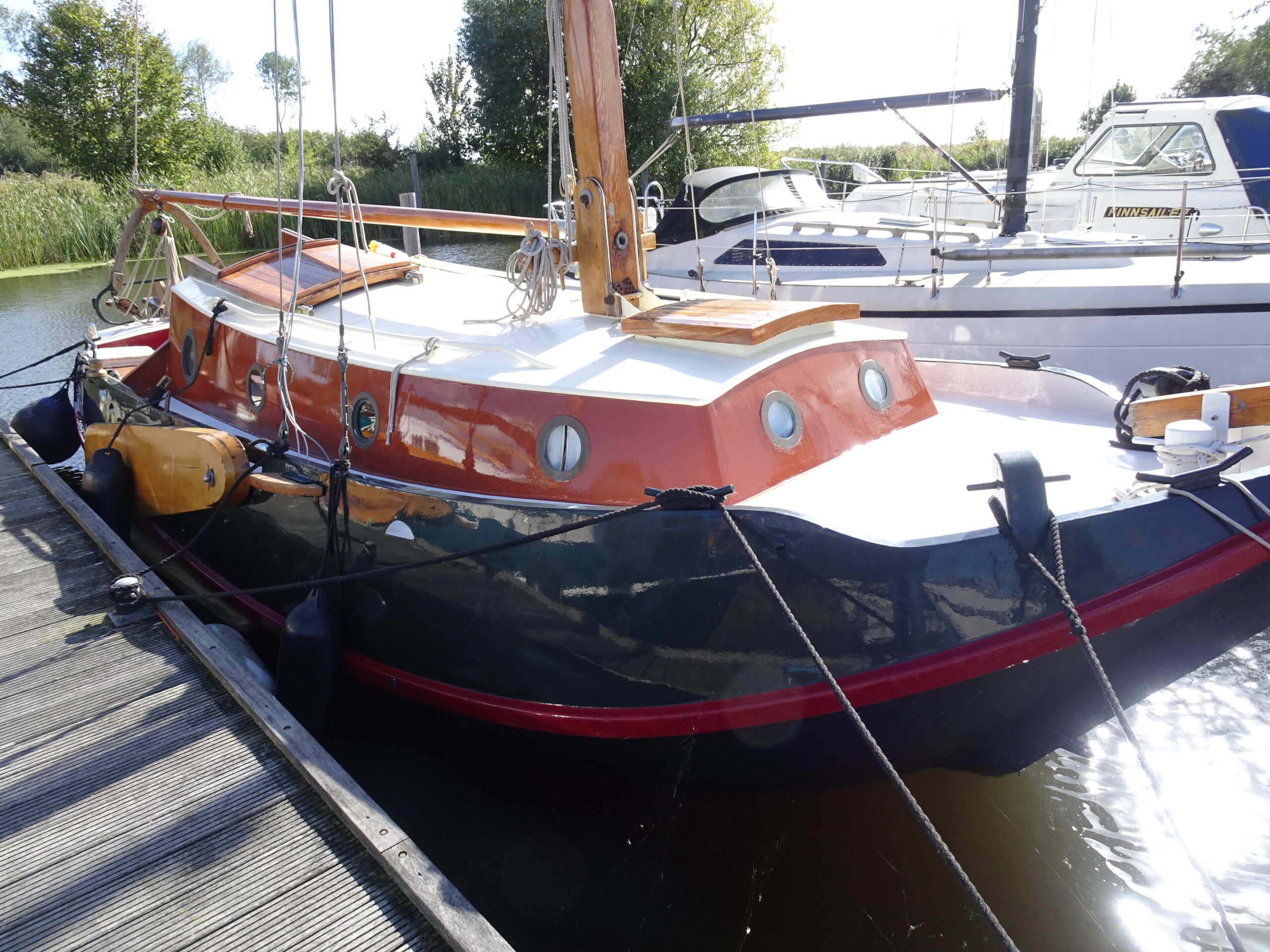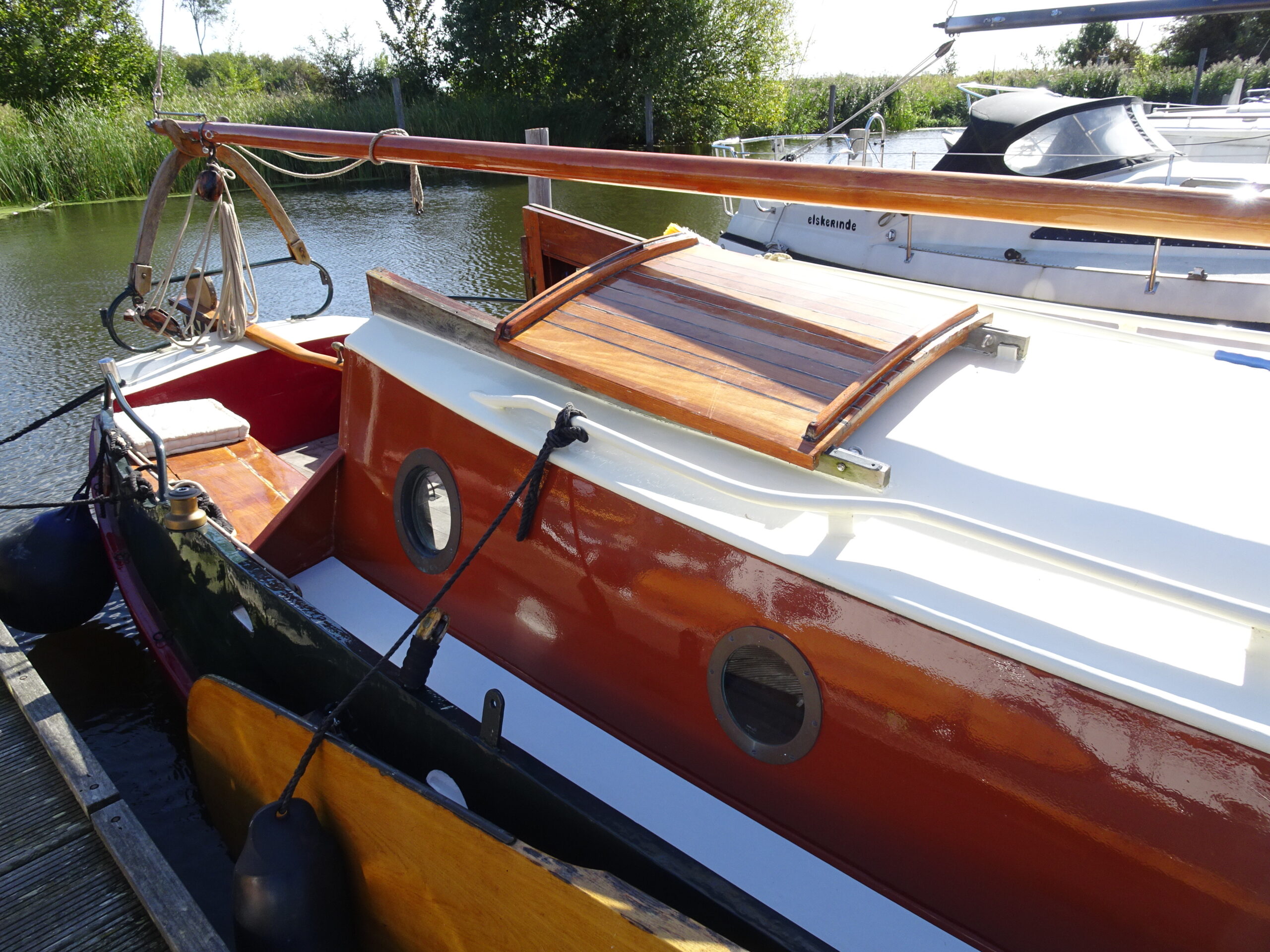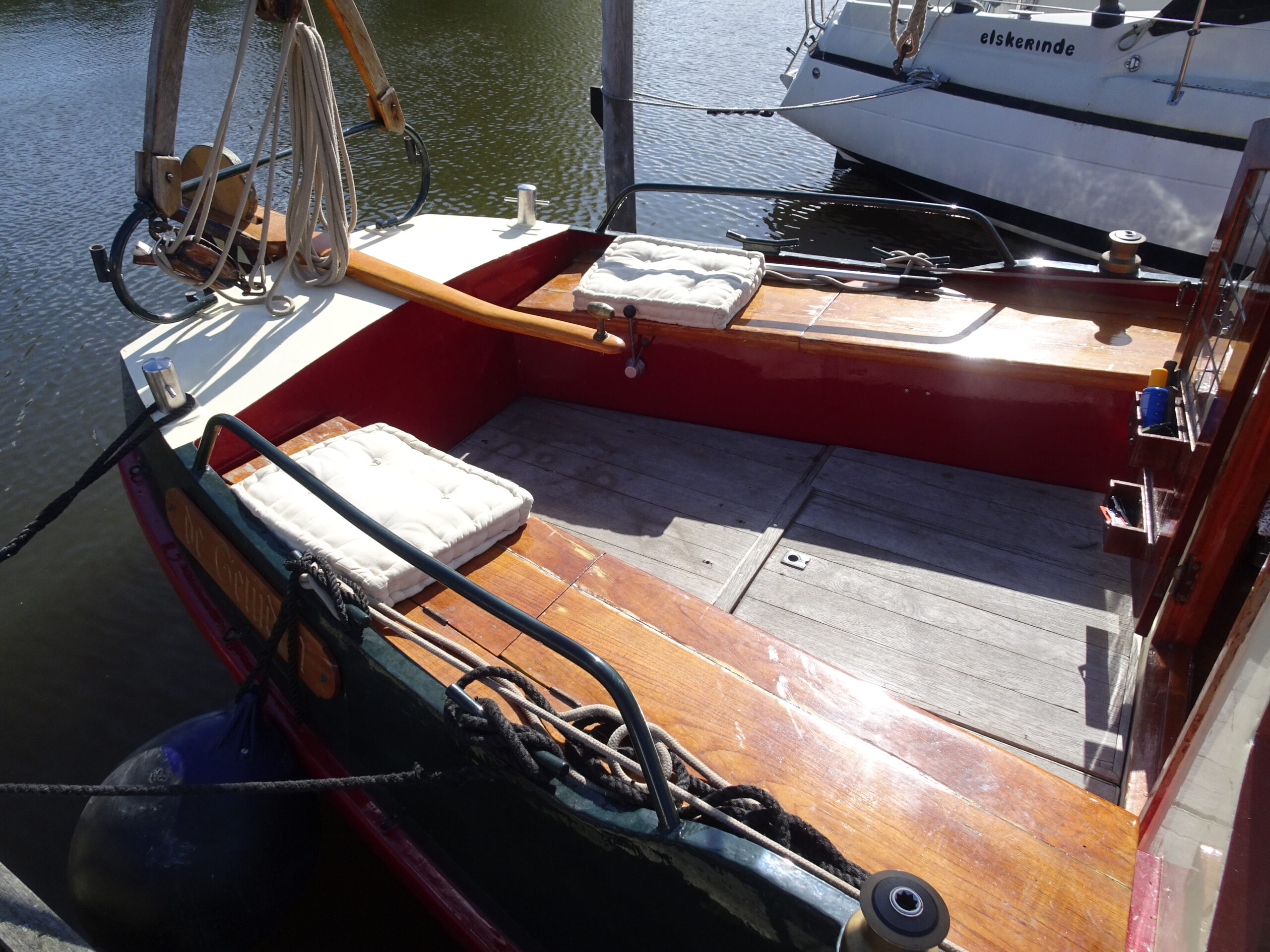 Dan de zeilen, dit is tenslotte een platbodem zeiljacht. De zeilgarderobe bestaat uit een prachtig bruin groot en voorzeil. Beide zeilen zijn in uitstekende staat. Alle schoten, lijnen, vallen, lieren etc. eveneens in zeer goede staat. Er is eeen kluiverboom aanwezig. Voor zowel het grootzeil als het voorzeil (fok) is een zeilhuik aanwezig. De mast, boegspriet, giek, gaffel en zwaarden zijn in goede staat, net als de rest van het schip overigens. De mast heeft recent groot onderhoud gehad: al het beslag is vernieuwd, het houtwerk bij de hommer is aangepakt (alle ringen in de mast zijn gestraald, gepoedercoat en daarna in de 2 componentenverf gezet. Alles in topstaat.