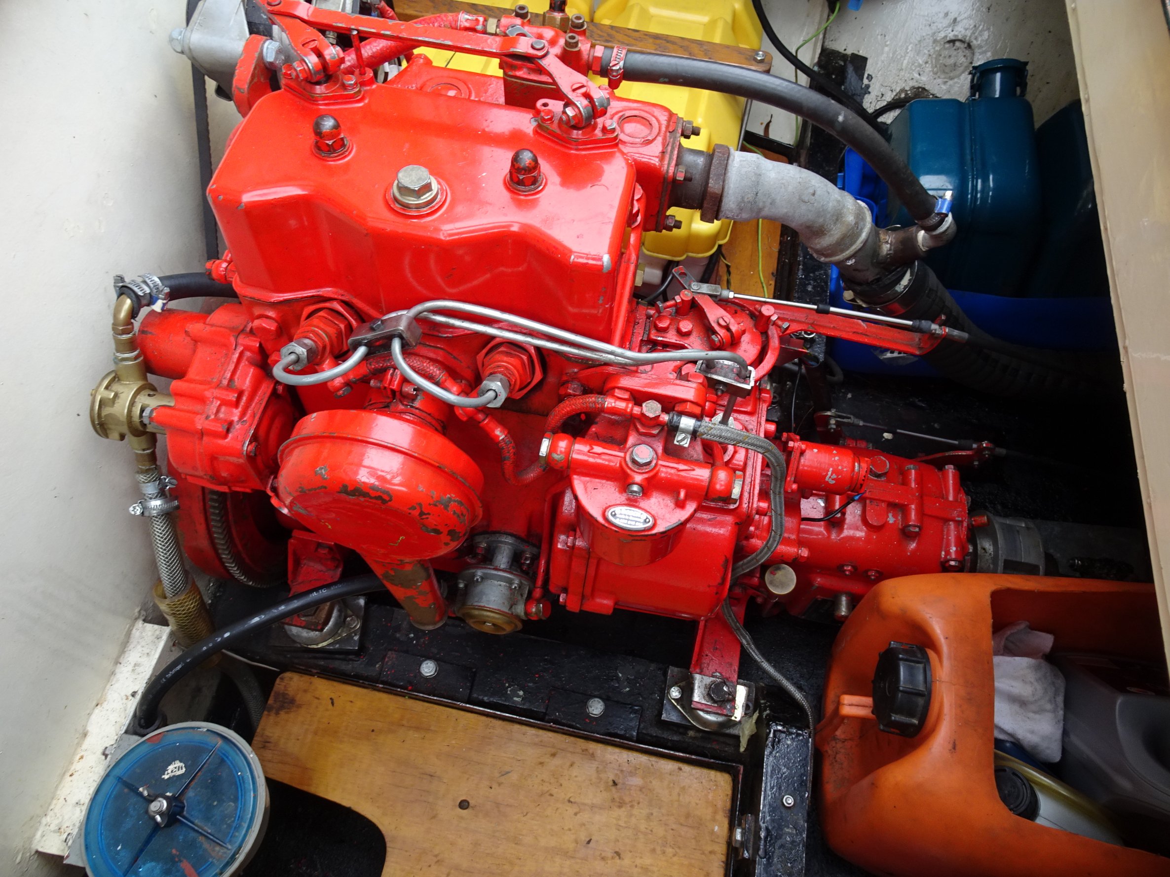 Motor: Bukh DV20 inboard diesel, 2 cilinder met 20PK, vaste schroefas vetgesmeerd