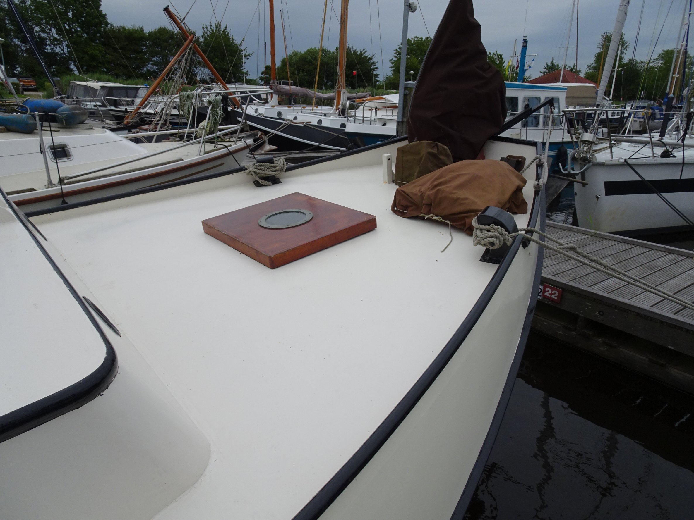 Ze is recent geschilderd en ziet er weer tip top uit. Houtwerk netjes op orde. Aan boord staat de overbekende betrouwbare Bukh DV20 dieselmotor, een 2 cilinder die 20PK levert. Loopt goed en als je er een beetje op past loopt ze over 40 jaar nog en daarna nog eens 40 jaar. Een prachtige krachtige krachtbron. Verder nog wat te melden? Jazeker: ze is compleet uitgerust: van koelbox tot verwarming (een hele fraaie) en van toilet met vuilwatertank tot kooktoestel, het is er allemaal. Gewoon een eerlijke goed onderhouden Zeeschouw voor een nette prijs. Voor deze boot geldt: kijken, kopen, (betalen), varen. Degelijk schip dat in Dokkumer Nieuwe Zijlen op je te wachten ligt.