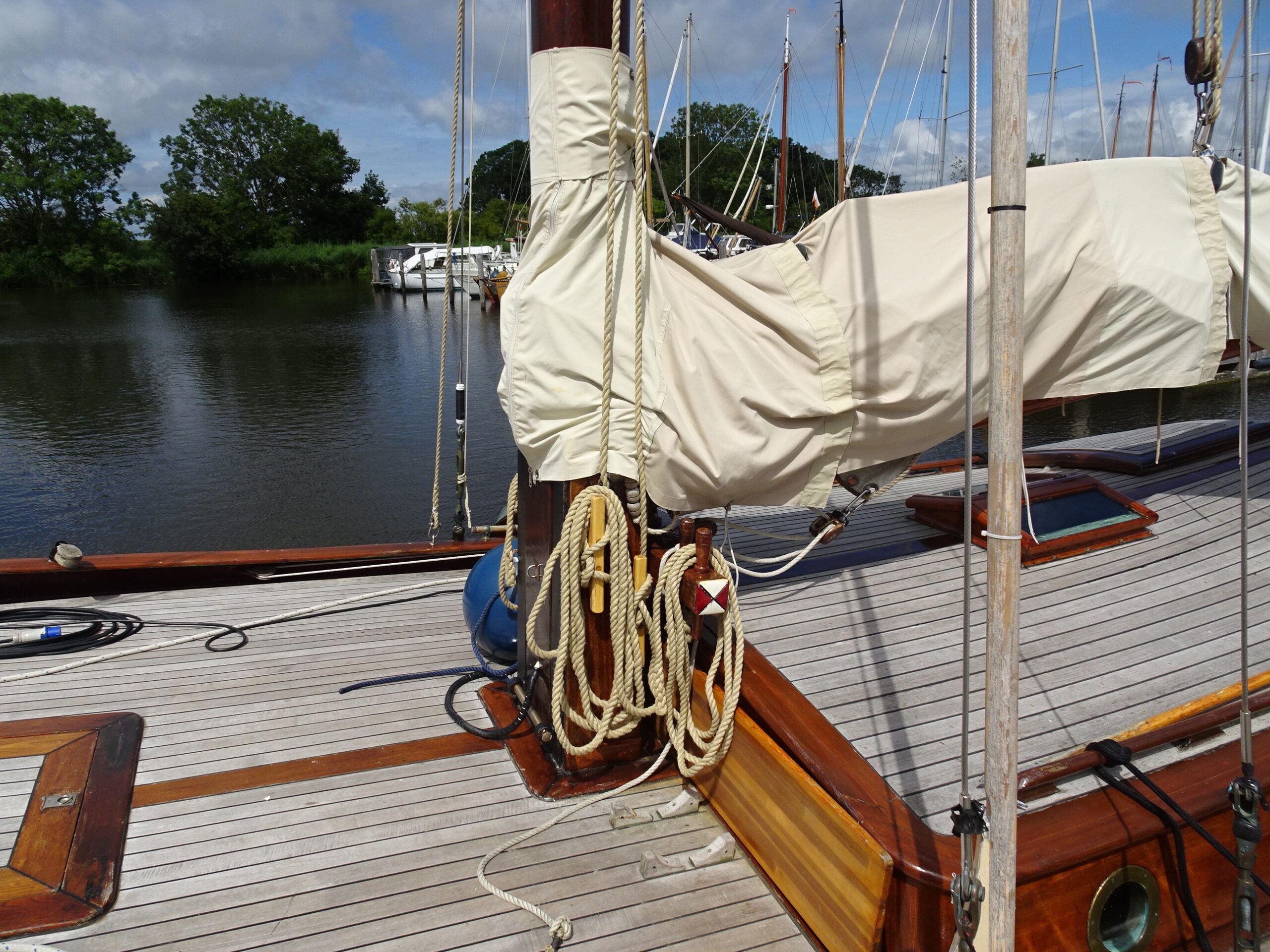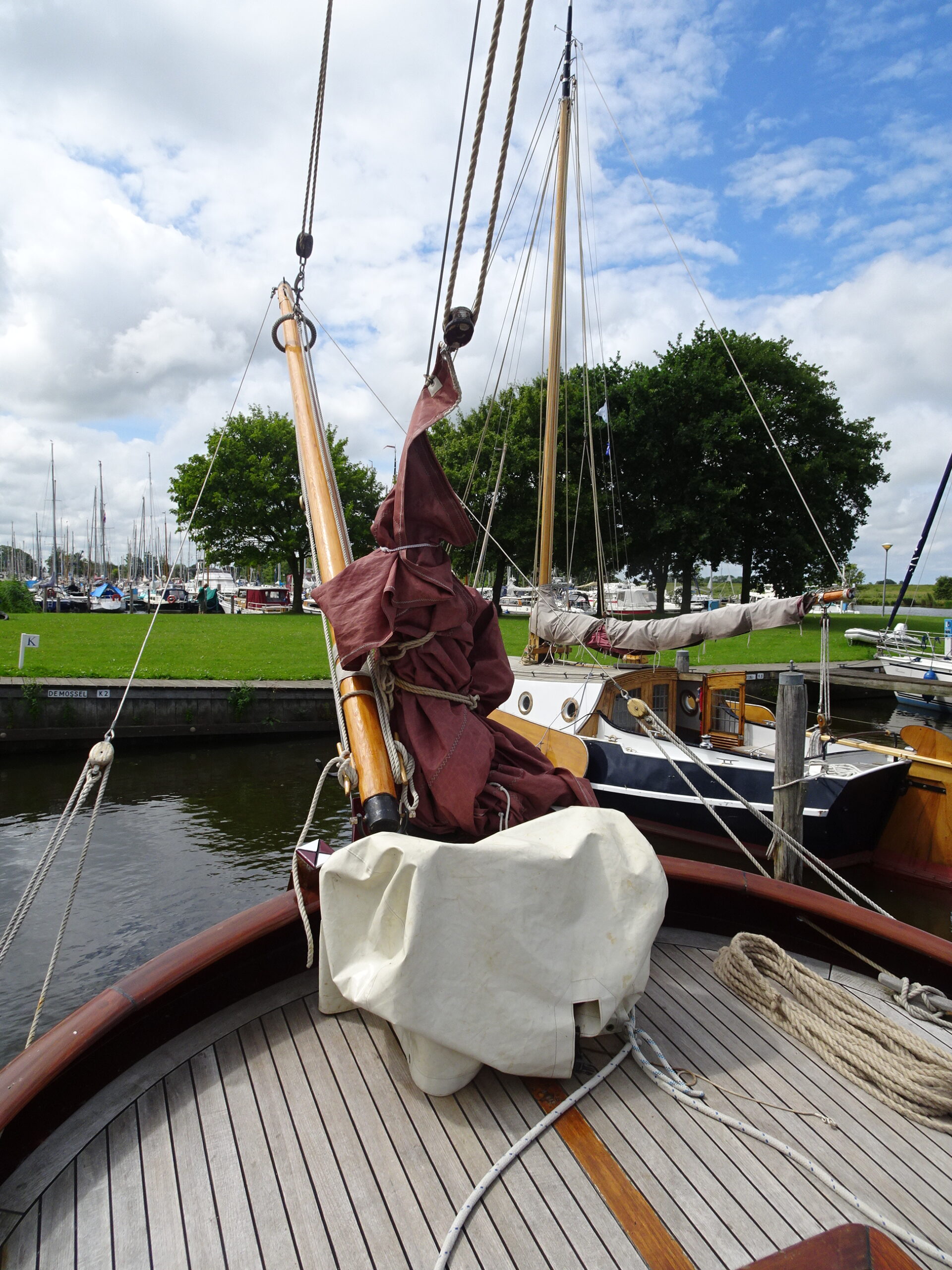 Ja en dan de zeilen. Deze Lemsteraak is op verschillende manieren te tuigen en te zeilen. De zeilgarderobe bestaat uit een Grootzeil, Stagfok, Botterfok, Kluiver en Halfwinder. Het grootzeil, de stagfok en de botterfok kunnen gereefd worden. Het grootzeil is van 2020, de andere zeilen iets ouder maar allemaal in zeer goede staat. Het grootzeil is easy te hijsen middels 1 val, gaat opmerkelijk makkelijk. Daarnaast staan er 4 selftailing lieren aan dek, zijn alle vallen, schotten, blokken en lijnen in ook weer zeer goede staat. Er is een huik voor het groot en voorzeil.