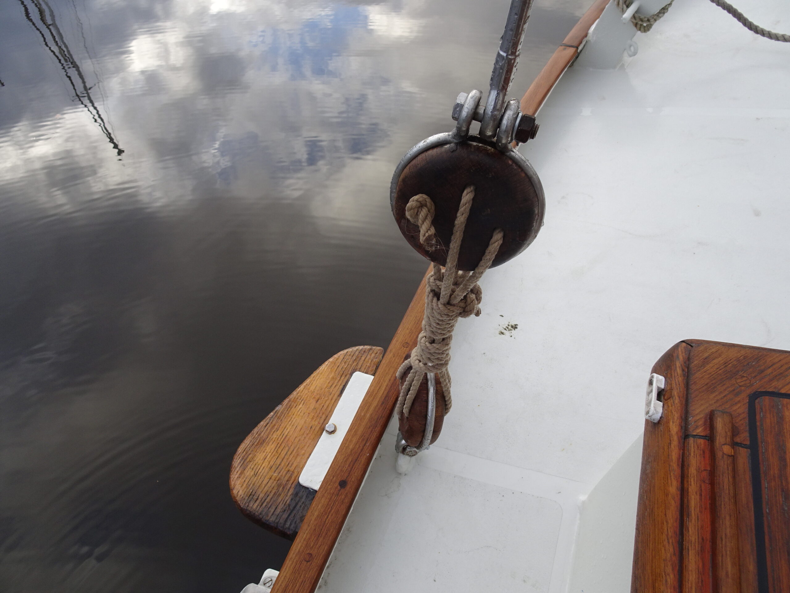Qua zeilvoering is het ook prima geregeld aan boord van deze Vollenhovense Bol 8,10. Er is een grootzeil, een kluiver (als nieuw) en een botterfok. De zeilen zijn netjes, uiteraard in donkerbruin en van Dacron. Alle vallen, schoten, lijnen, blokken en lieren zijn in nette staat. Het schip is als gemeld direct vaar en ook zeilklaar. Alle rondhouten zijn gelakt en in goede staat, dit geldt ook voor de zwaarden en al het andere houtwerk aan boord.