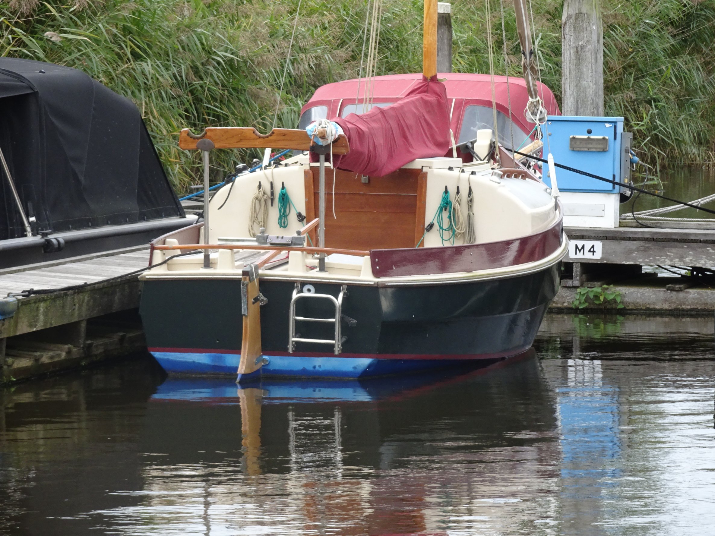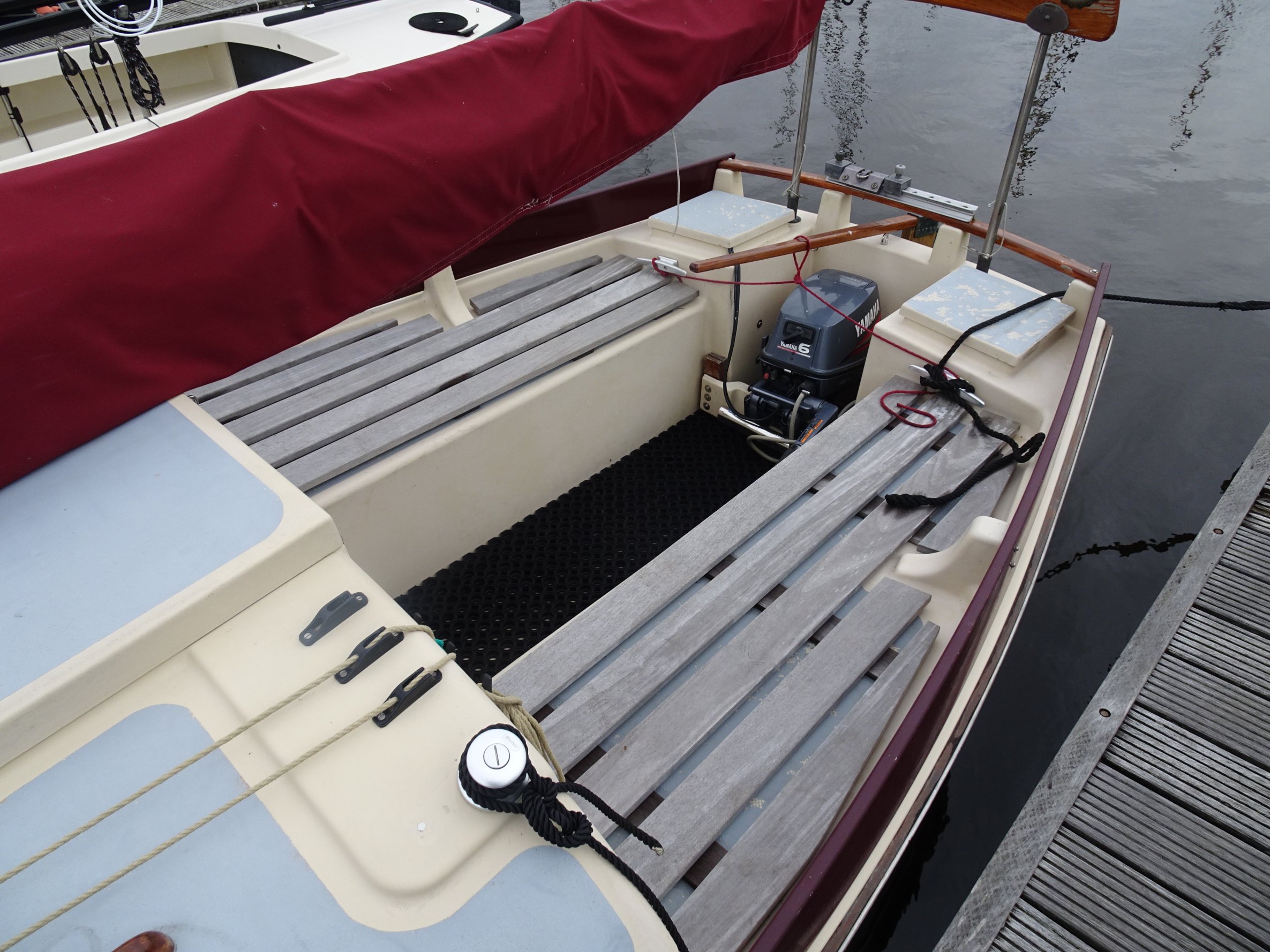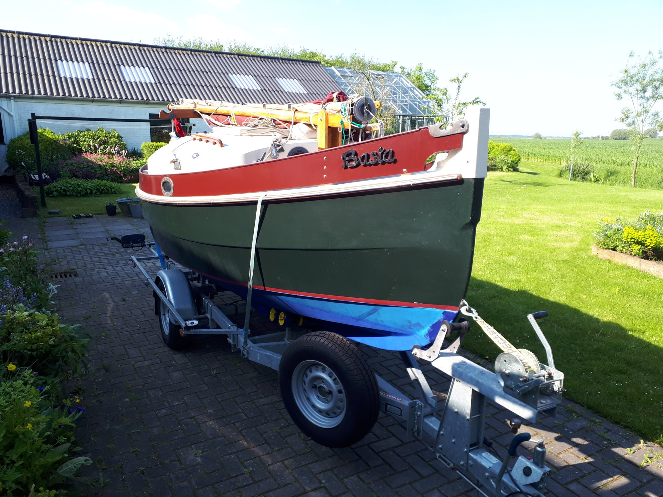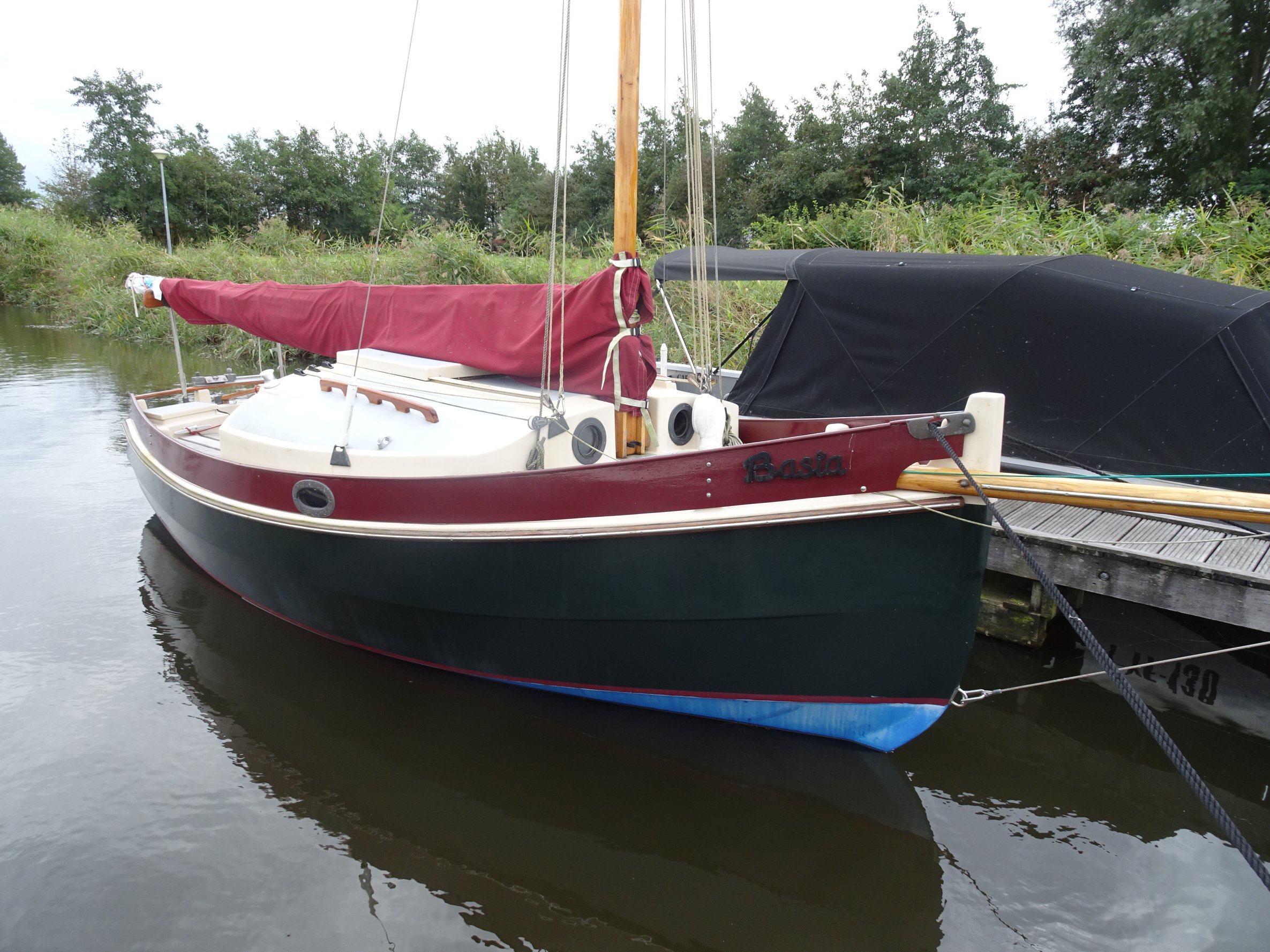 Ondiepe binnenwateren zijn geen probleem door de 2 ophaalbare zwaardjes (die beide overigens vernieuwd zijn), en ook de Waddenzee is een prachtig vaargebied voor deze bootjes. Easy overal heen te brengen met de trailer, mast ligt zo plat en staat overigens ook in no time. Van binnen ruimte voor 2 volwassenen, zit een klein keukentje in, chemisch toilet erbij, niet de meest luxe boot maar toch, qua sfeer en gezelligheid alsmede gebruikersplezier simpelweg nauwelijks te evenaren. De boot is 16ft. lang en weegt 600 kilo, incl. trailer onder de 1.000KG totaal, kan dus achter behoorlijk wat auto’s vervoerd worden. Er zit een 6PK Yamaha buitenboordmotor bij, 2 takt, loopt geweldigen weegt niet teveel. Ja…… wat een leuk ding. In goede staat, kan zo mee voor al jouw vaaravonturen op Wad en binnenwater.