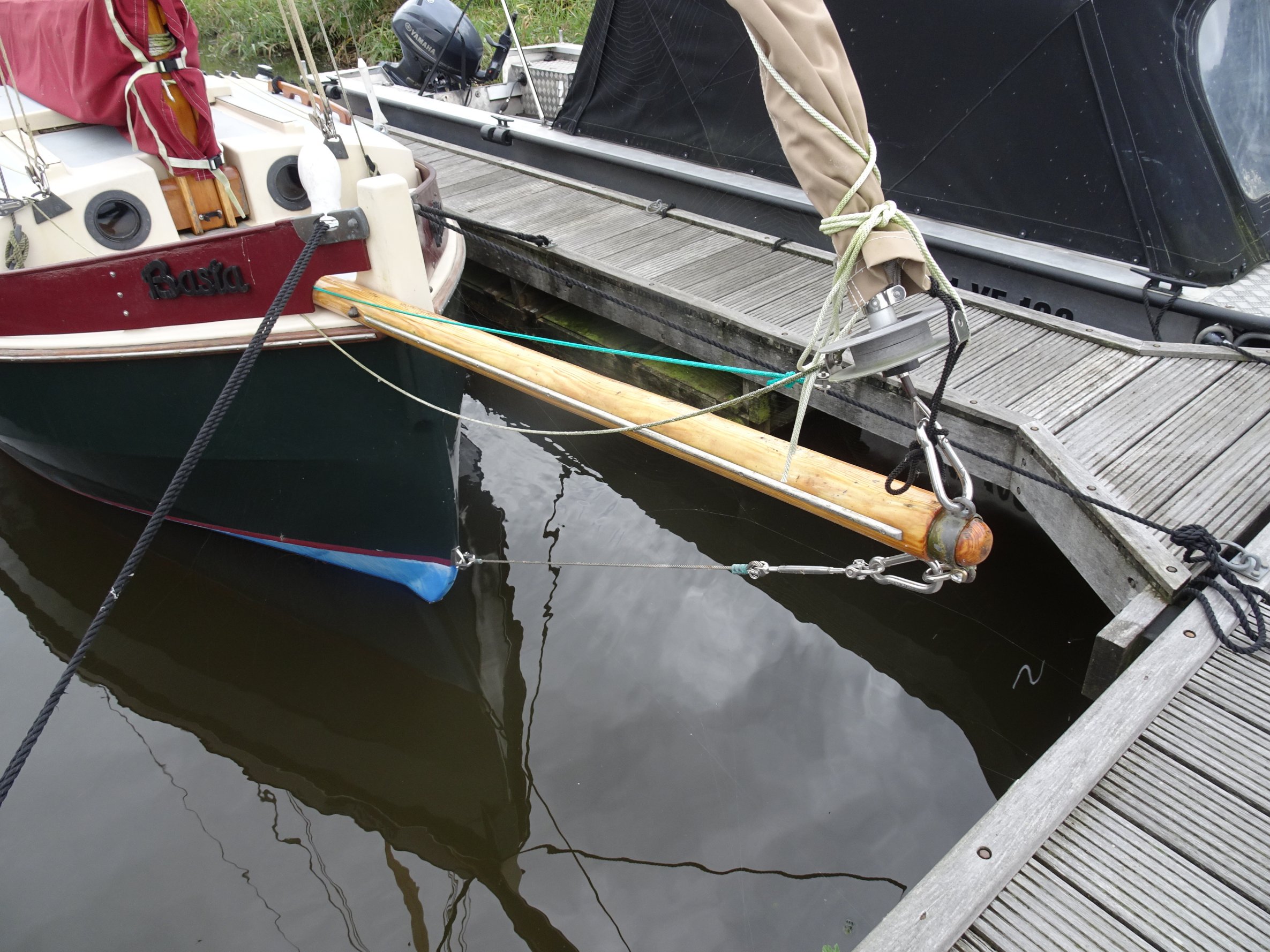 Lengte schip: 4,90 een met boegspriet en aangehangen roer 6,70