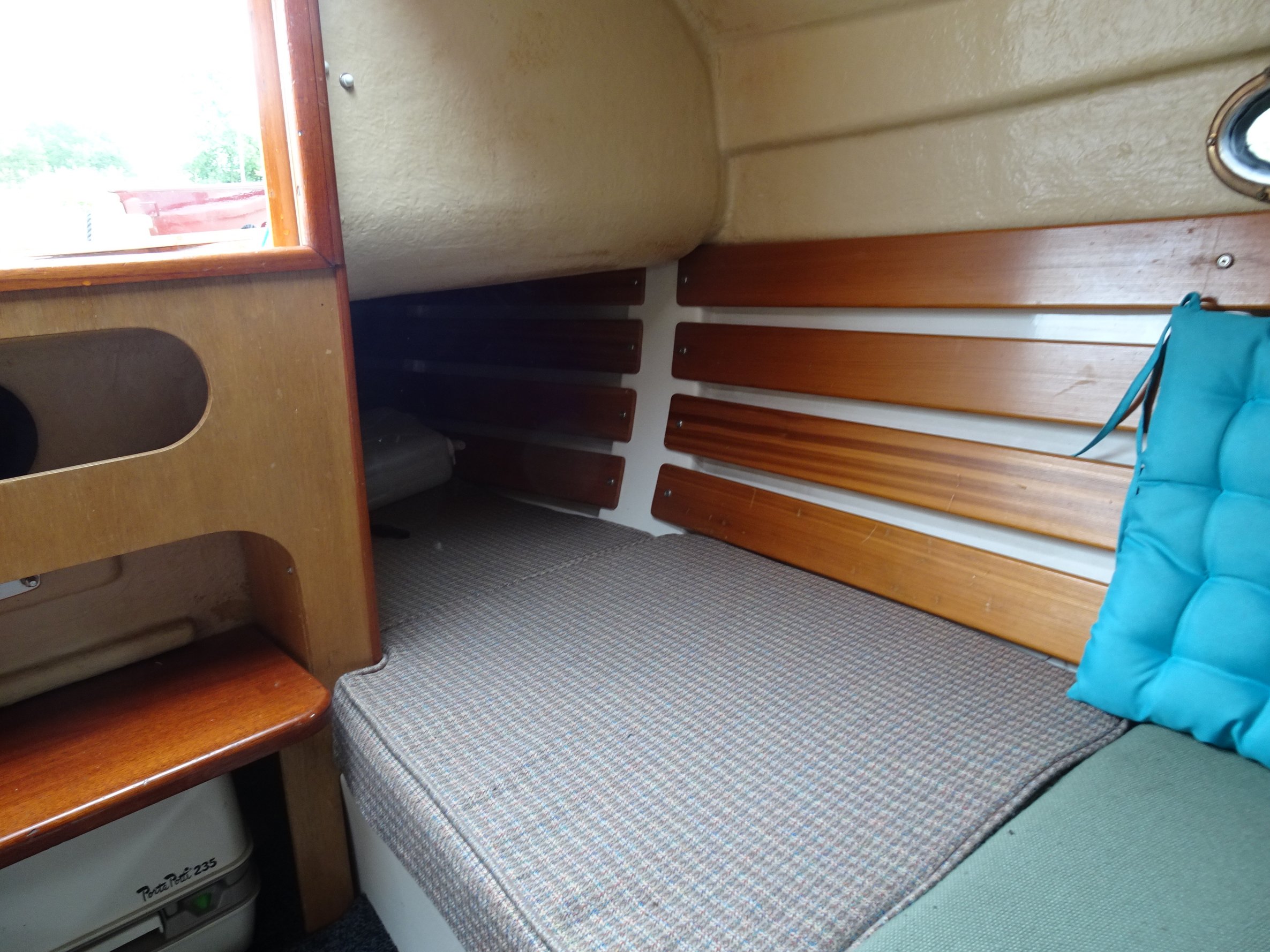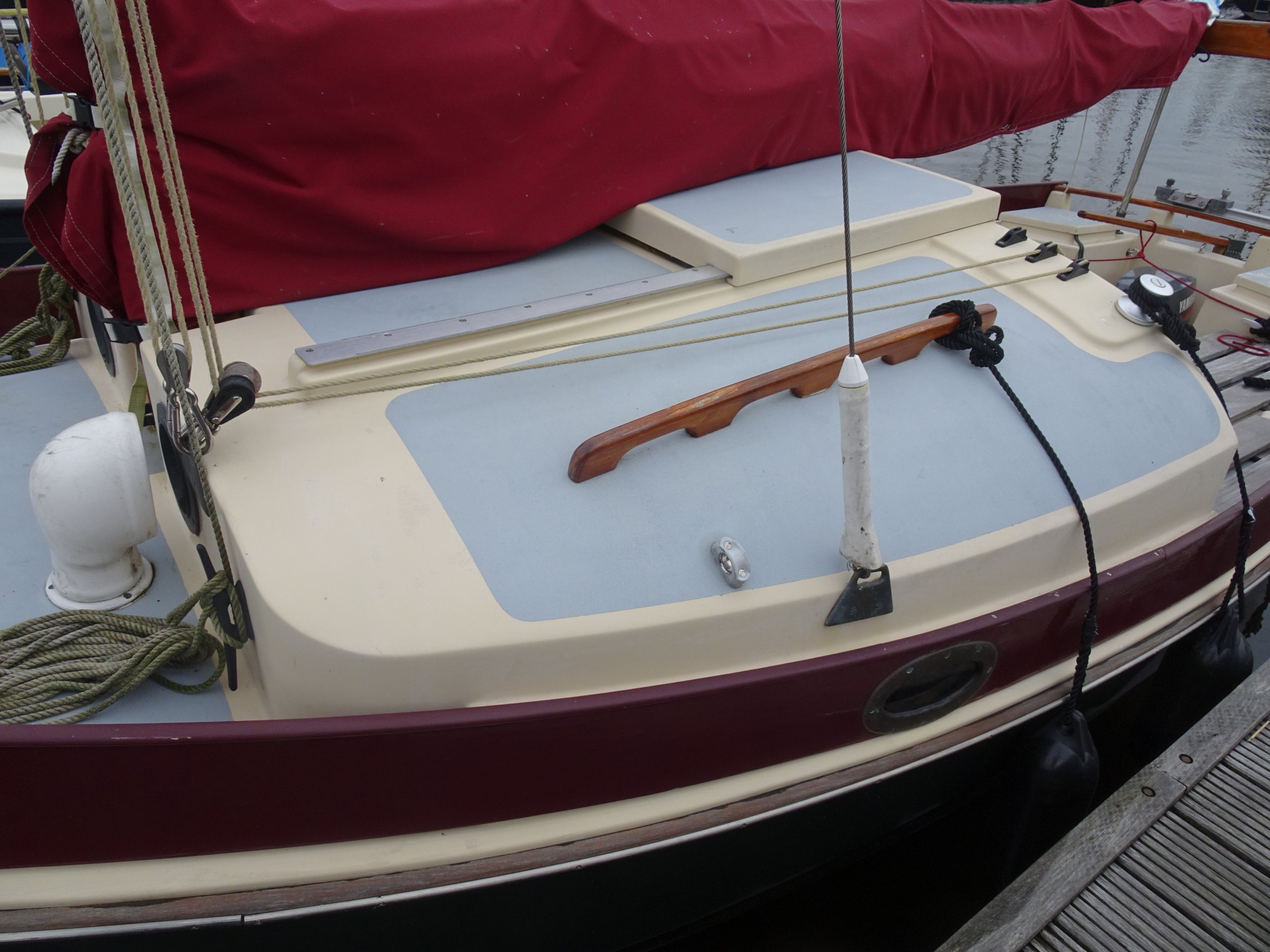 Deze Winkle Brig is altijd goed onderhouden en staat ’s winters binnen (met trailer en al uiteraard). De zeilen zijn prima, er zit een grootzeil bij met een steile gaffel, zo kun je vrij veel zeil zetten. Uiteraard zit er ook een voorzeil bij, deze fok heeft een rol/reefsysteem. Het grootzeil kan 2 x gereefd worden. De grootschoot incl. blokken etc. en de lieren zijn in 2020 vernieuwd, evenals beide zwaarden. Boot is gewoon in een goede staat en kan prima solo gezeild worden. Van binnen is het een gezellige boot, in de kajuit kun je prima met 2 personen slapen. Er zit een chemisch toilet in, een 1 pits kooktoestel (op Spiritus), nette kussenset en uiteraard ook een kompas, tot zover de luxe aan boord……. Boot is compleet vaar en zeilklaar! Nieuw in de antifouling.